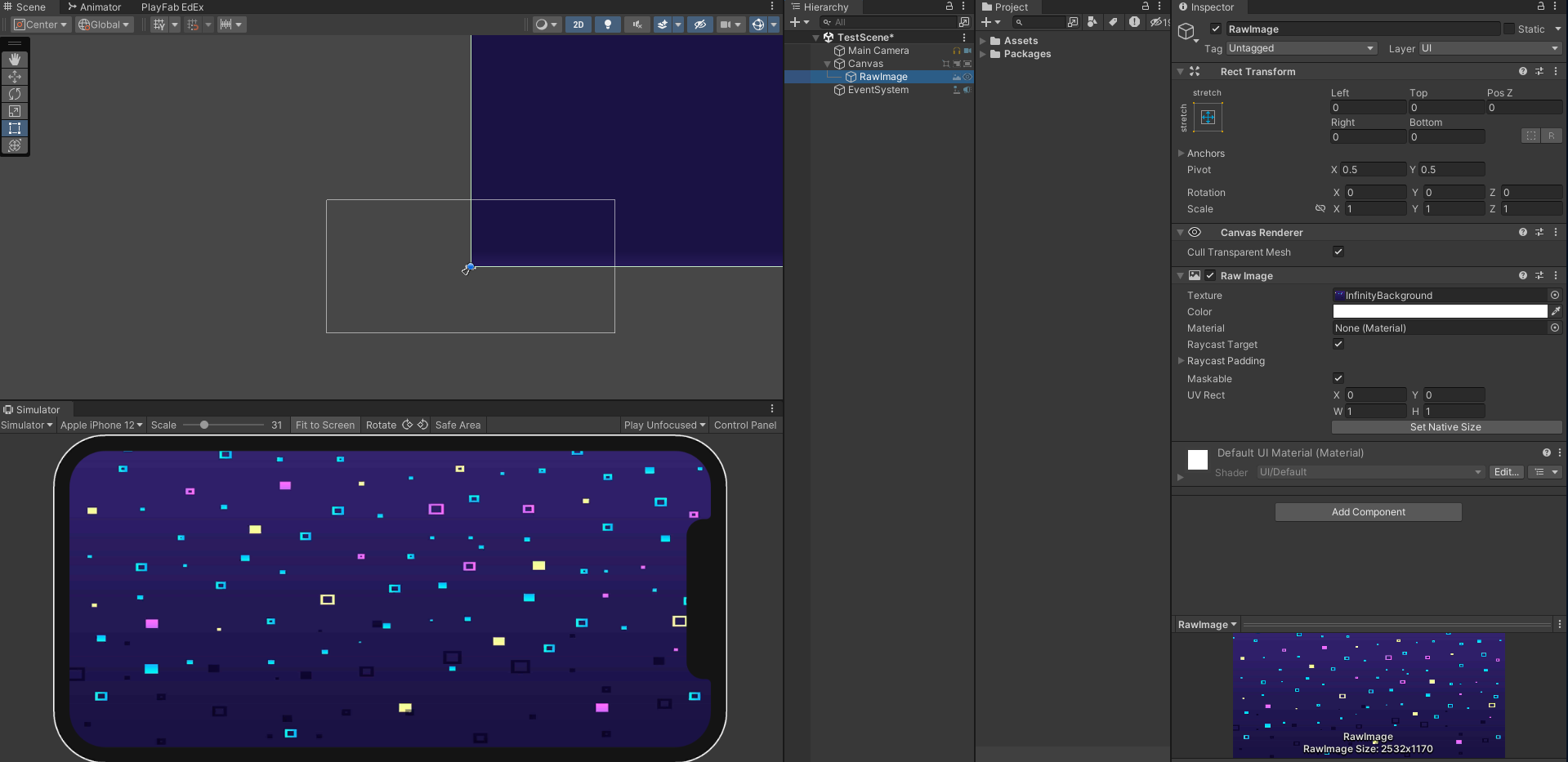 그리고 Raw Image에 배경으로 받은 이미지를 넣어줍니다.